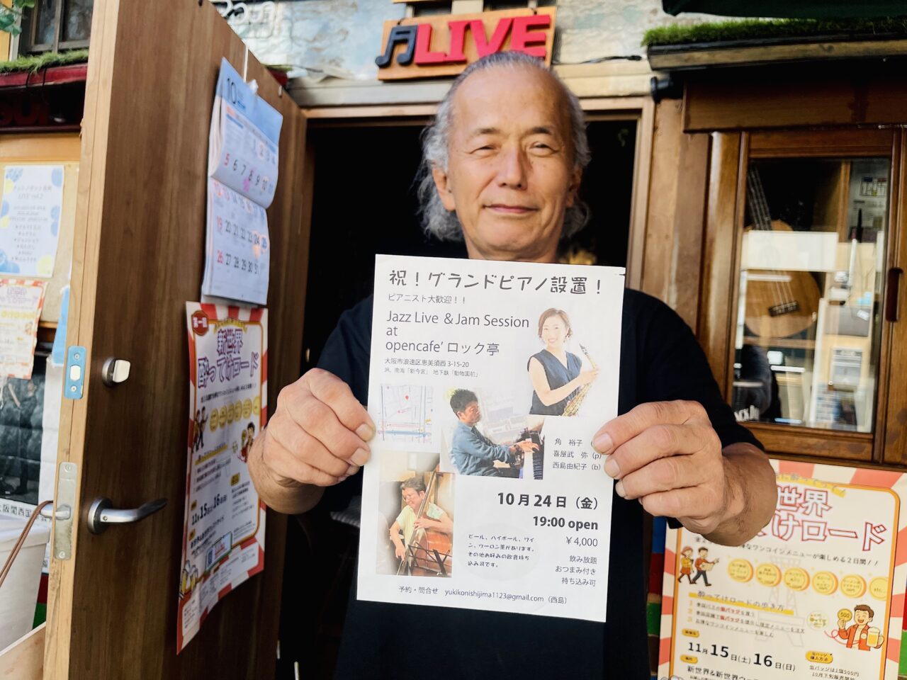 【大阪市浪速区】飲み物一杯の注文で誰でも弾ける! ライブ喫茶「opencafeロック亭」にグランドピアノが設置されました