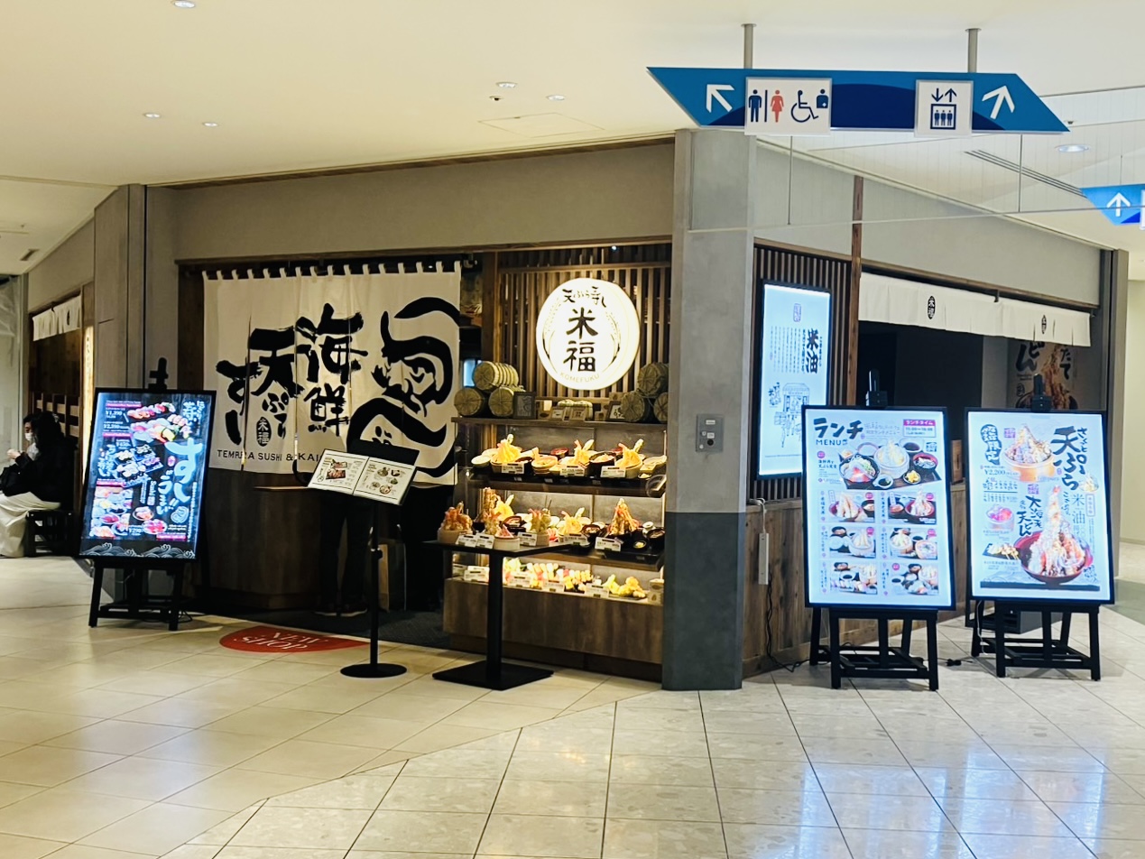 また6階には「天ぷらすし海鮮 米福」が10月24日にオープンしています。米油100%で揚げる天ぷらはサクサク軽い仕上がりで、お寿司や海鮮料理も新鮮。京都本店で人気のお料理に加え、なんばパークス店だけの限定メニューもあるそうです。昼も夜も使いやすい居酒屋で、ふらっと入りやすい雰囲気。営業時間は11:00〜23:00(フードLO 22:00、ドリンクLO 22:30)、座席数は42席となっています。