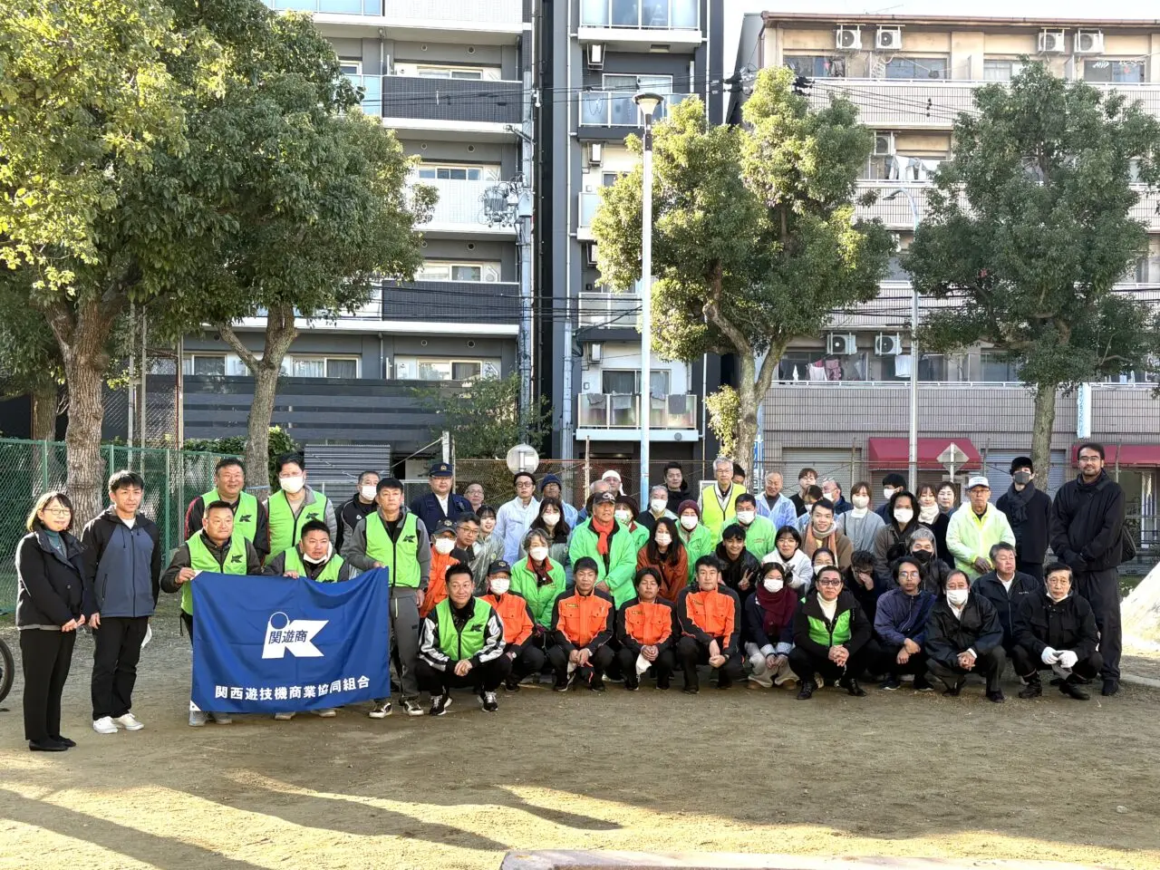 この日は、浪速区役所、浪速警察署、大国・恵美地域の住民、第一学院高等学校、エール学園、関西遊技機商業協同組合(関西遊商)、民間団体、約100名が参加。