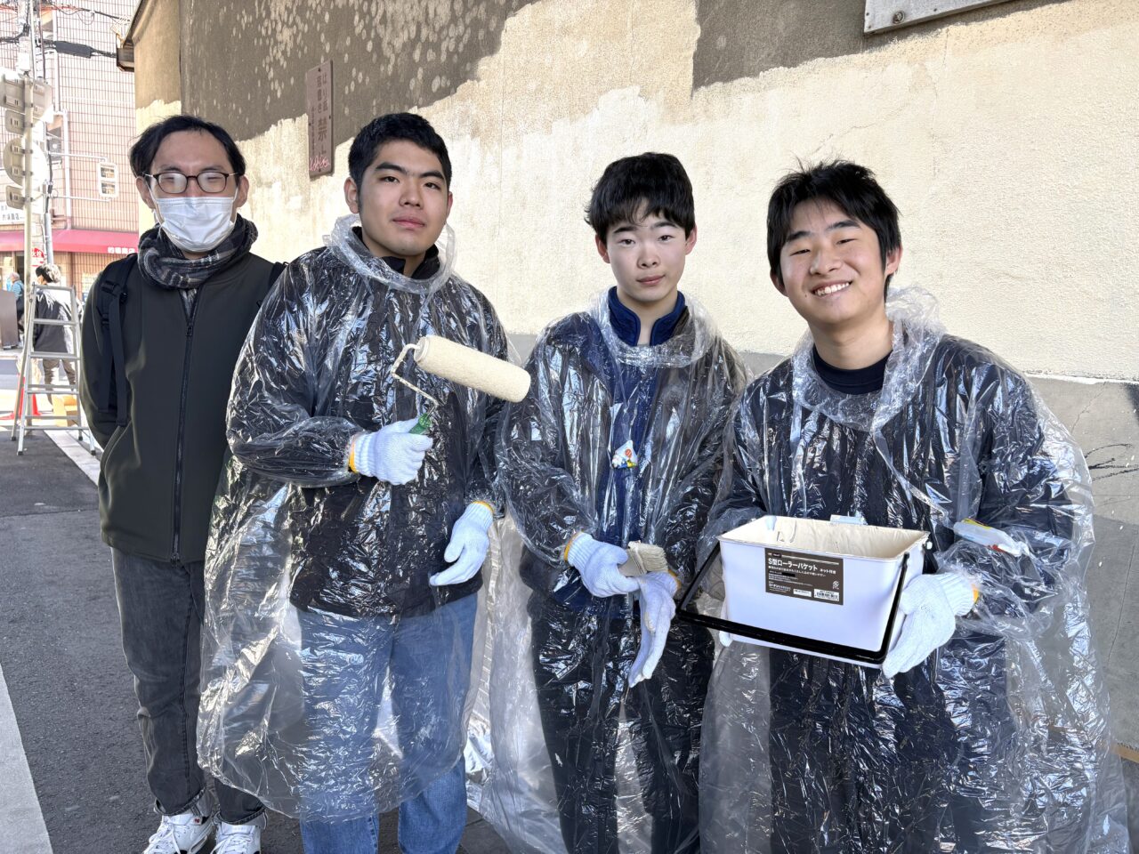 大阪梅田キャンパスの学生で、ボランティアサークル「Vプロ」の春田さん、松浦さん、岩木さんは「ペンキ塗りは初めてですが、意外と力がいりますね」「地域の人と一緒に取り組むことでつながりが深まるのが良いと思います」「学校の近くの中崎町での清掃活動や、近くの区民センターのお祭りの手伝いなどもしていて、参加すると色々な人と話せるのが楽しいです」などと語ってくれました。