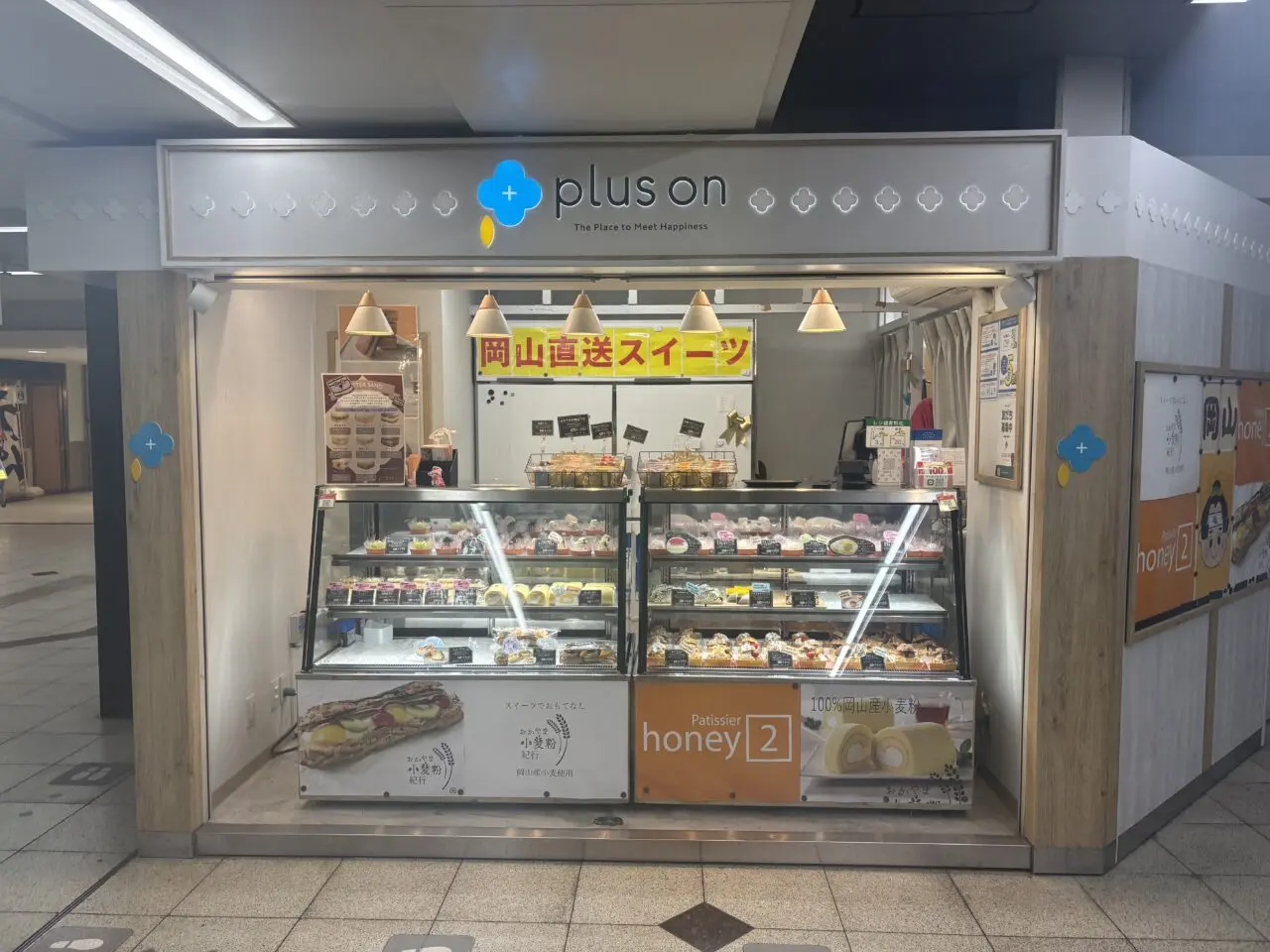 南海天下茶屋駅の改札横にあり、和菓子や洋菓子などの食品を週替わりで販売するショップ「plus on 南海天下茶屋店」では、2025年12月29日から岡山市の洋菓子店「ハニーハニー」が洋菓子を販売しています。
