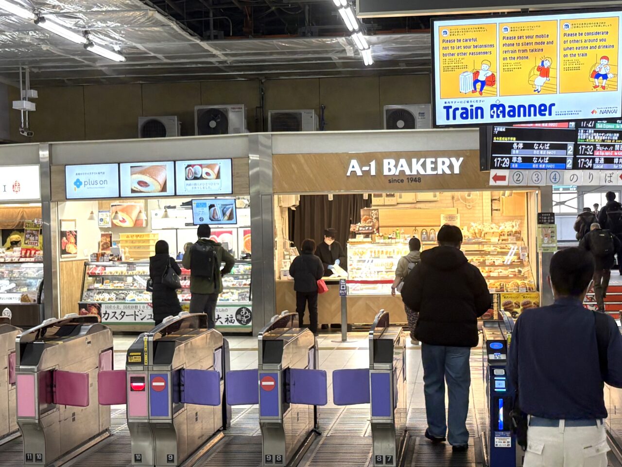 「plus on 南海新今宮店」は、南海新今宮駅の改札を入ってA-1 BAKERYの左隣です。