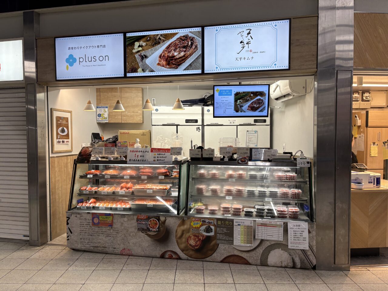 南海新今宮駅の構内にあり、和菓子や洋菓子などの食品を週替わりで販売するショップ「plus on 南海新今宮店」では、2026年3月18日に鮒ずしで有名な発酵のまち高島市から「天平キムチ」が出店し、自慢のキムチを販売しています。