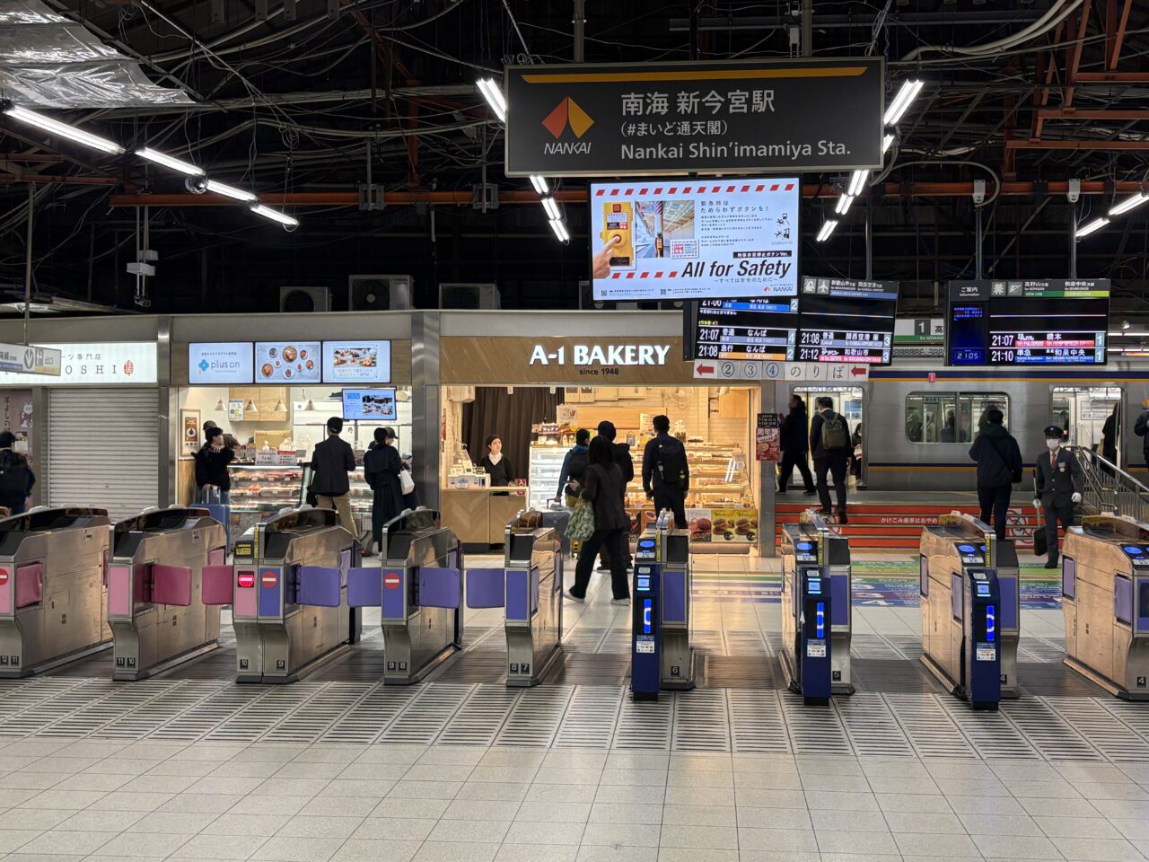 「plus on 南海新今宮店」は、南海新今宮駅の改札を入ってA-1 BAKERYの左隣です。